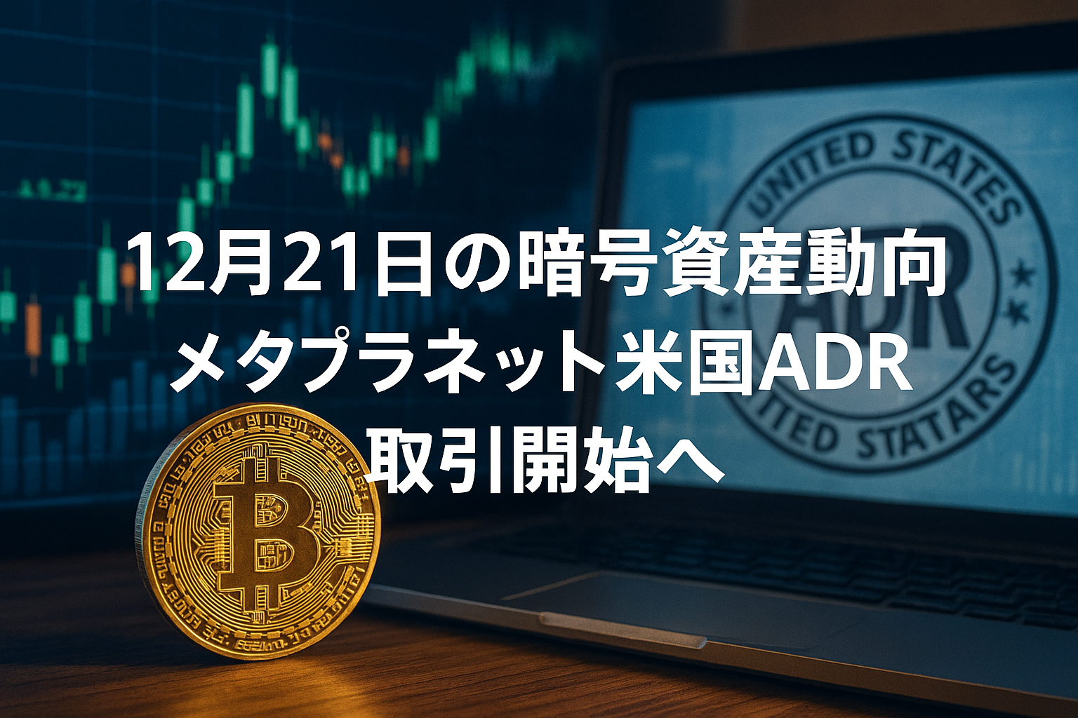 12月21日の暗号資産動向を追うと、メタプラネット米国ADRが取引開始へという材料が市場心理に与える影響が見えてきます。