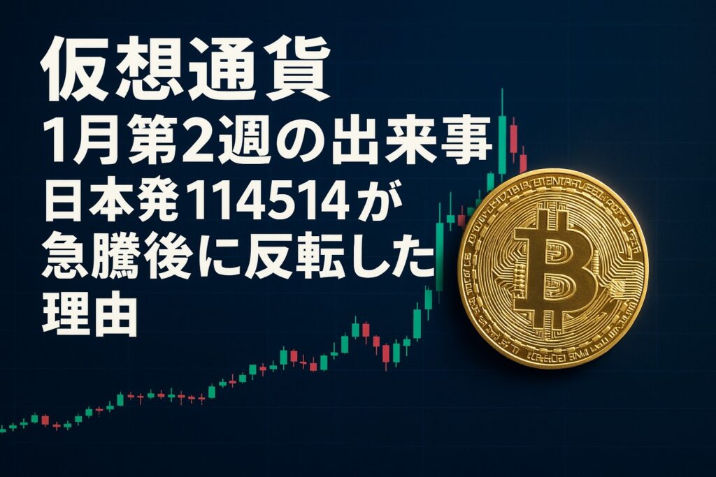 仮想通貨の1月第2週の出来事を振り返ると、日本発114514が急騰後に反転した理由が見えてきます。 短期で熱狂が集まった一方、市場全体は軟調気味で、材料の出尽くしと需給の偏りが値動きを増幅させました。 1月第2週の仮想通貨ニュース全体像と市場環境 1...