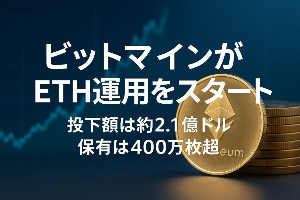 ビットマインがETH運用をスタートしたことで、投下額は約2.1億ドル、保有は400万枚超という規模感が市場の注目を集めています。 企業の暗号資産運用が一般化する中、今回の動きはETHの需給や価格見通し、ステーキング利回りにも波及し得ます。要点と読み解...