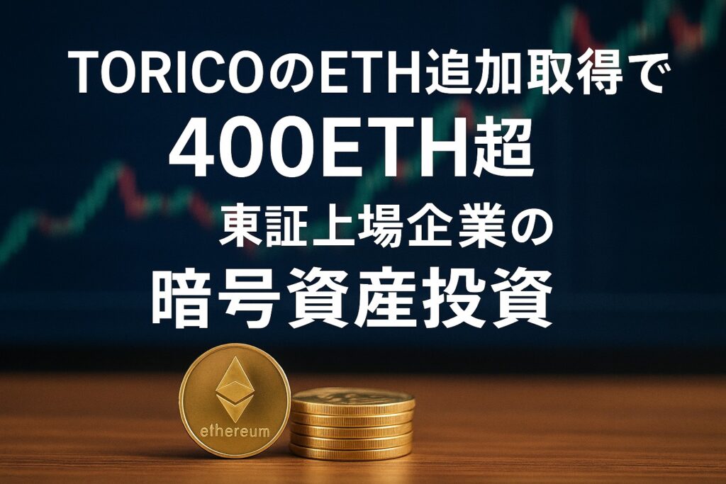 TORICOのETH追加取得で総保有が400ETH超。東証上場企業の暗号資産投資
