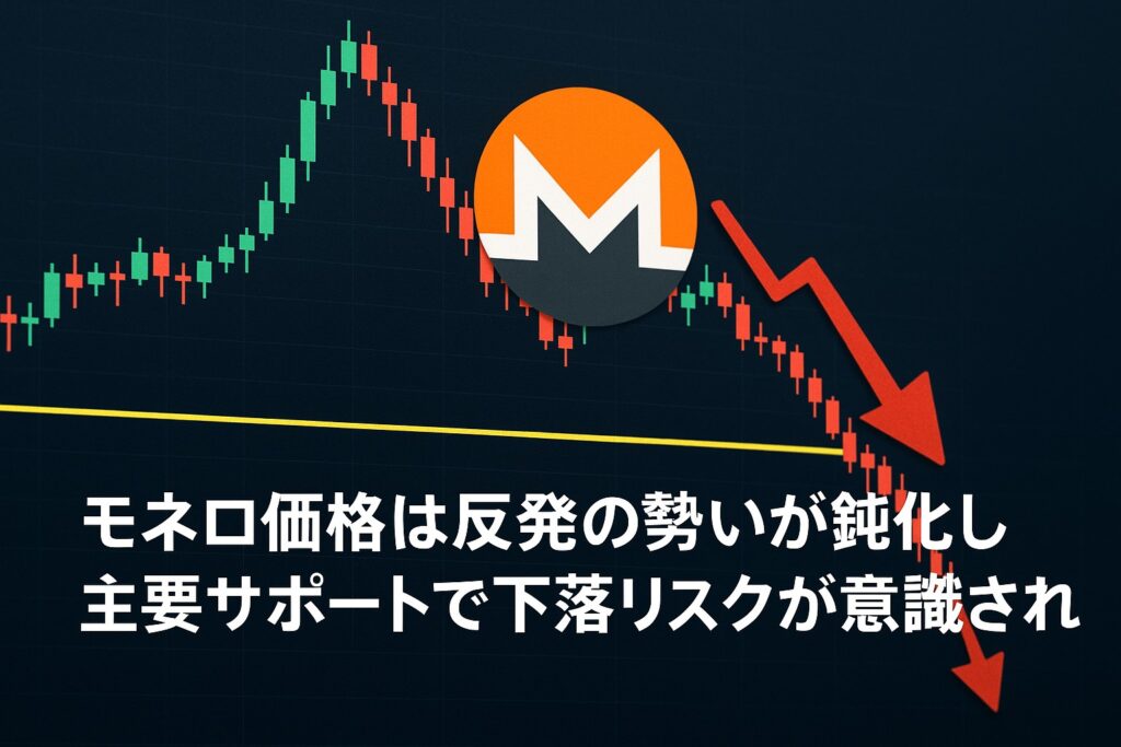 モネロ価格は反発の勢いが鈍化し主要サポートで下落リスクが意識される
