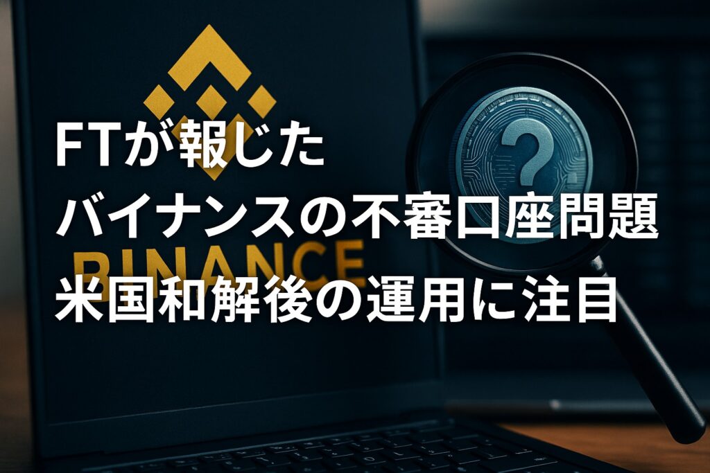 FTが報じたバイナンスの不審口座問題 米国和解後の運用に注目。金融当局との和解後も、取引所の監視体制や利用者保護は十分なのか――暗号資産ユーザーが知るべき論点を整理します。 FT報道で浮上したバイナンスの不審口座問題とは FTが報じたバイナンスの不... -